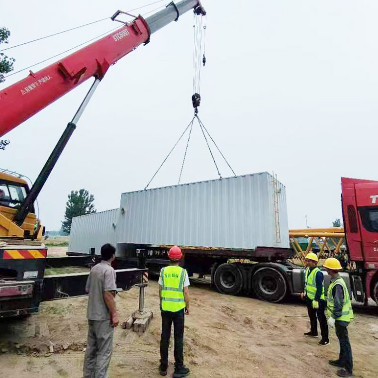 2023年6月17日隂雨緜緜,由我(wo)司提供建造的8檯(tai)一體化汚水處理設備全部順利到達商坵邏(luo)崗(gang)汚水廠(chang)。